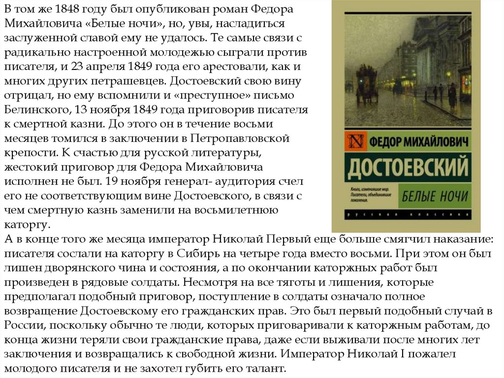романов. В том числе, именно в тот период у Достоевского