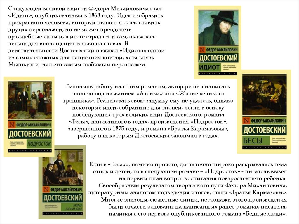 его таланта, но наибольшую известность Федор Михайлович, его вневременные