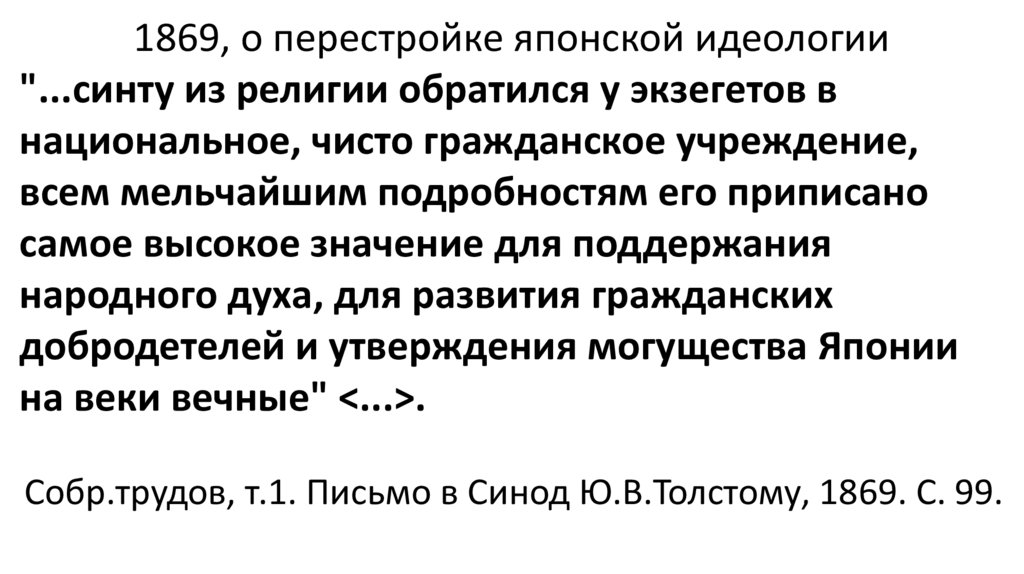 1869, о перестройке японской идеологии"...синту из религии обратился у экзегетов в