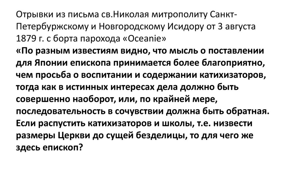 Отрывки из письма св.Николая митрополиту СанктПетербуржскому и Новгородскому Исидору от 3 августа1879 г. с борта парохода «Oceanie»