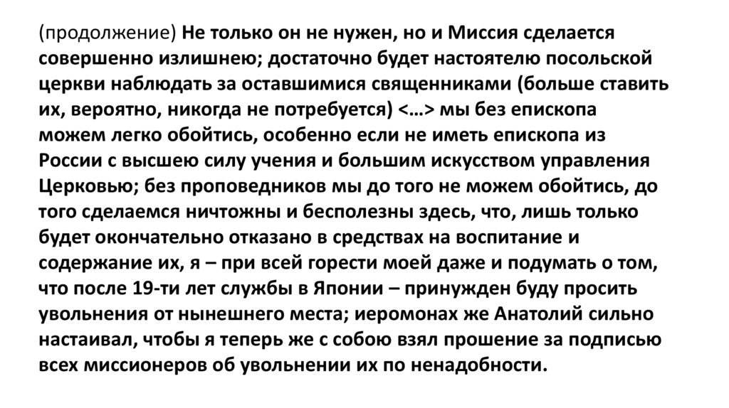 (продолжение) Не только он не нужен, но и Миссия сделаетсясовершенно излишнею; достаточно будет настоятелю посольской