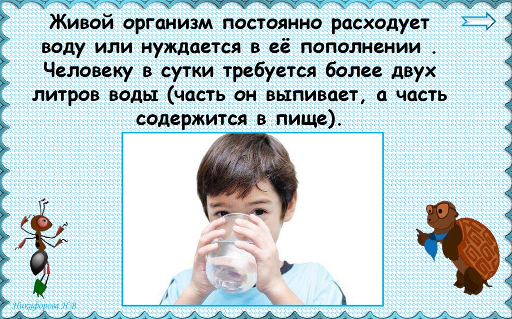 Живой организм постоянно расходуетводу или нуждается в её пополнении .