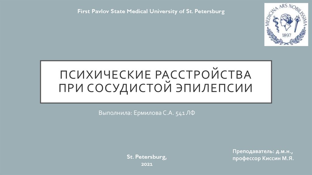 First Pavlov State Medical University of St. PetersburgПСИХИЧЕСКИЕ РАССТРОЙСТВА