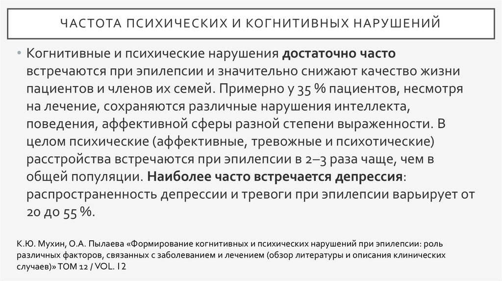 эпилепсией, по данным разных исследований, варьирует от 20 до