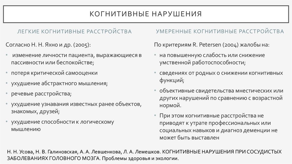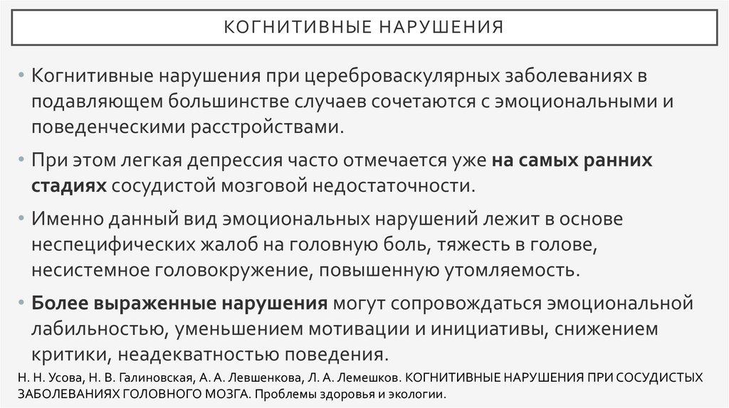 11. Н. Н. Усова, Н. В. Галиновская, А. А. Левшенкова, Л. А. Лемешков. КОГНИТИВНЫЕ НАРУШЕНИЯ ПРИ