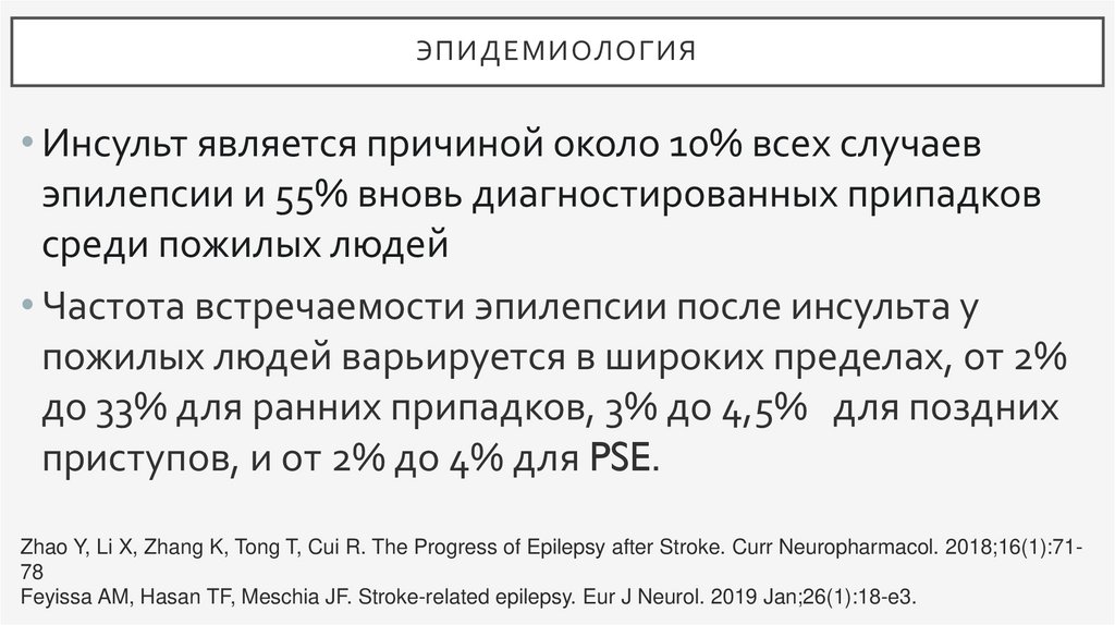 Zhao Y, Li X, Zhang K, Tong T, Cui R. The Progress of Epilepsy after Stroke. Curr Neuropharmacol. 2018;16(1):7178