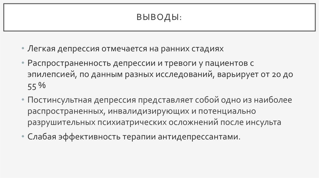 ВЫВОДЫ:• Легкая депрессия отмечается на ранних стадиях