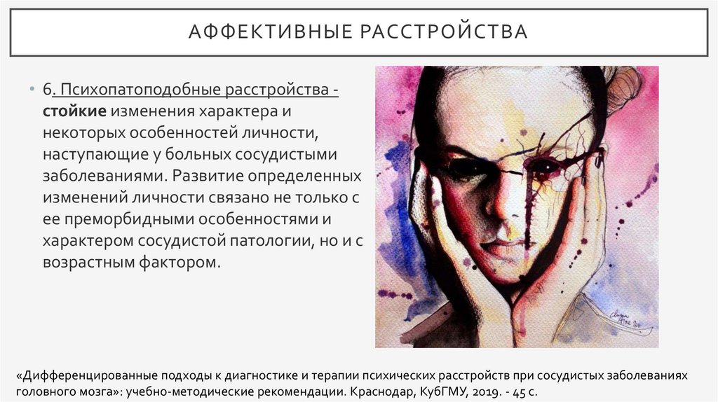 АФФЕКТИВНЫЕ РАССТРОЙСТВА• 6. Психопатоподобные расстройства стойкие изменения характера и