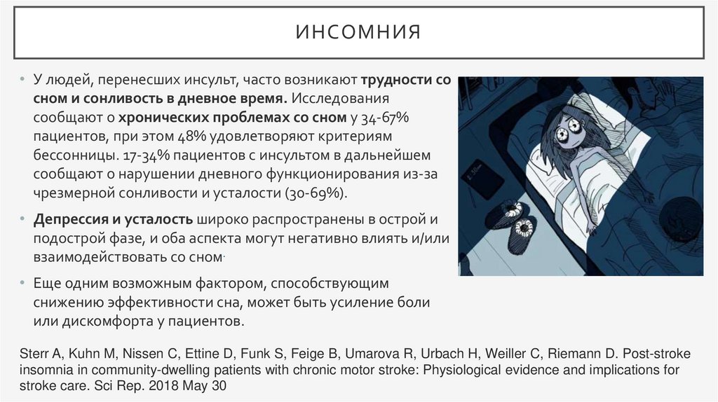 бессонницы. 17-34% пациентов с инсультом в дальнейшем