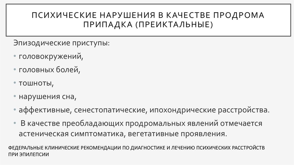 ПСИХИЧЕСКИЕ НАРУШЕНИЯ В КАЧЕСТВЕ ПРОДРОМАПРИПАДКА (ПРЕИКТАЛЬНЫЕ)