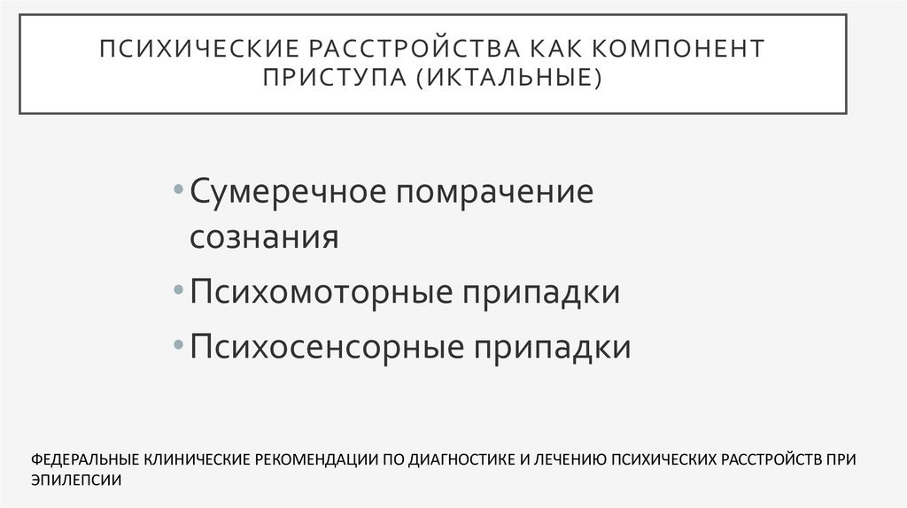 ПСИХИЧЕСКИЕ РАССТРОЙСТВА КАК КОМПОНЕНТПРИСТУПА (ИКТАЛЬНЫЕ)