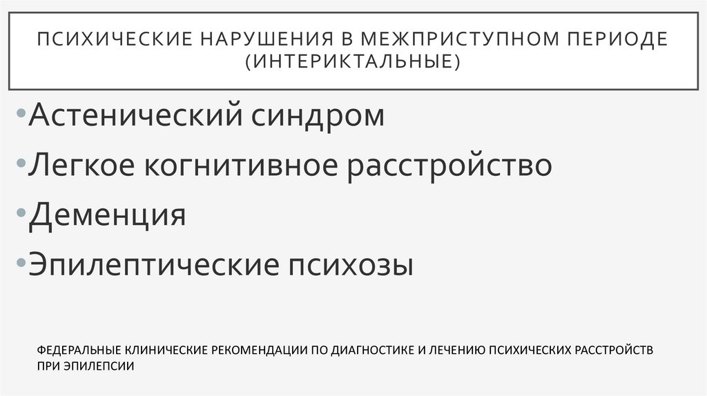 ПСИХИЧЕСКИЕ НАРУШЕНИЯ В МЕЖПРИСТУПНОМ ПЕРИОДЕ(ИНТЕРИКТАЛЬНЫЕ)