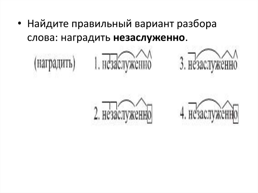 • Найдите правильный вариант разбораслова: наградить незаслуженно.