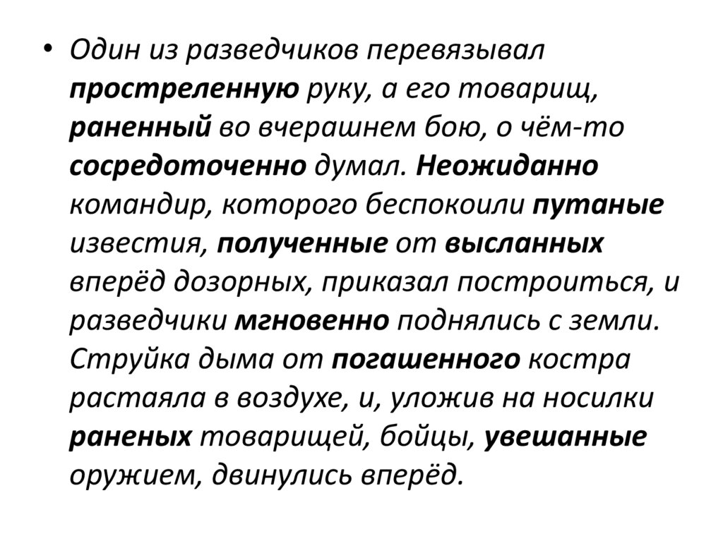 • Один из разведчиков перевязывалпростреленную руку, а его товарищ,
