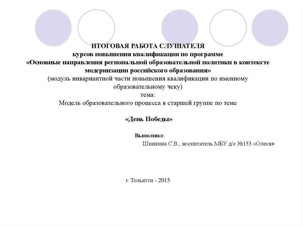 ИТОГОВАЯ РАБОТА СЛУШАТЕЛЯкурсов повышения квалификации по программе