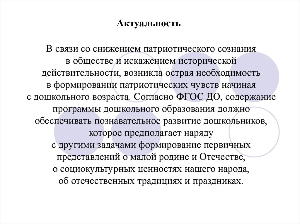 АктуальностьВ связи со снижением патриотического сознания
