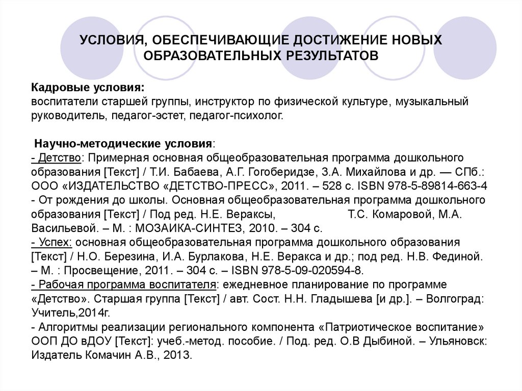 Научно-методические условия: