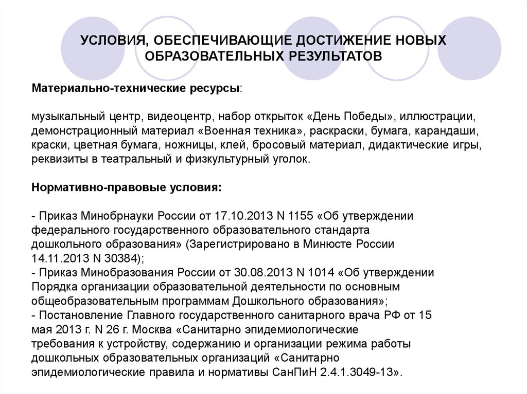 УСЛОВИЯ, ОБЕСПЕЧИВАЮЩИЕ ДОСТИЖЕНИЕ НОВЫХОБРАЗОВАТЕЛЬНЫХ РЕЗУЛЬТАТОВ