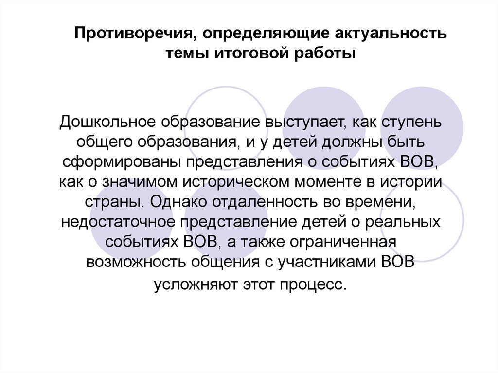 Противоречия, определяющие актуальностьтемы итоговой работы