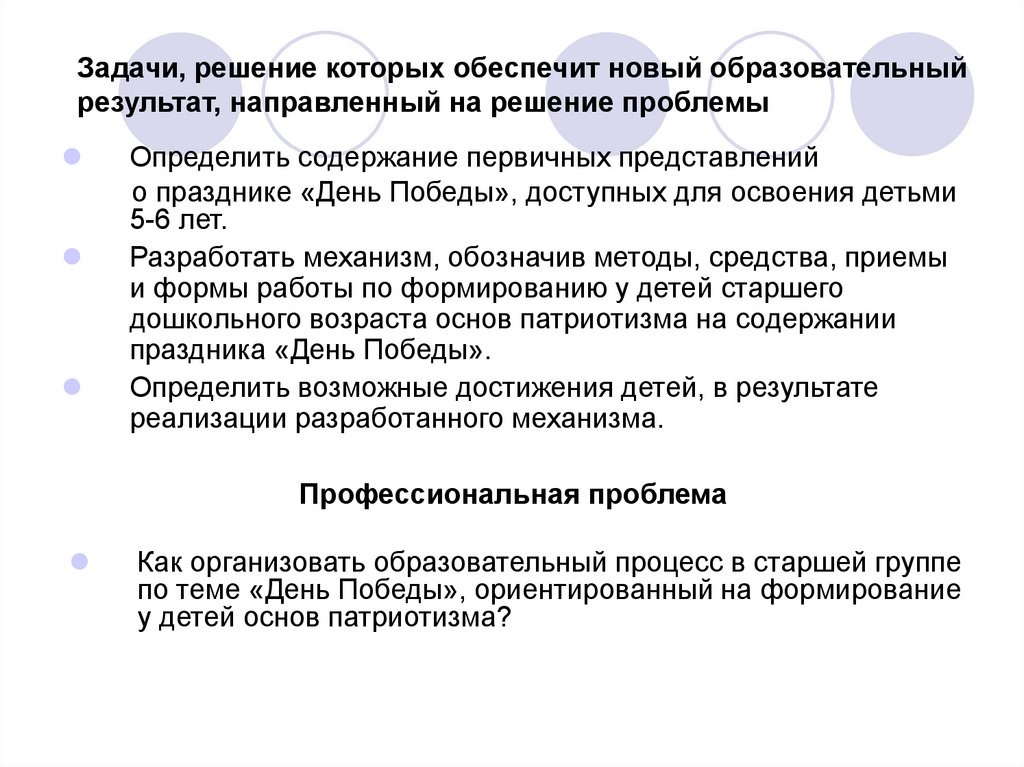 Задачи, решение которых обеспечит новый образовательныйрезультат, направленный на решение проблемы
