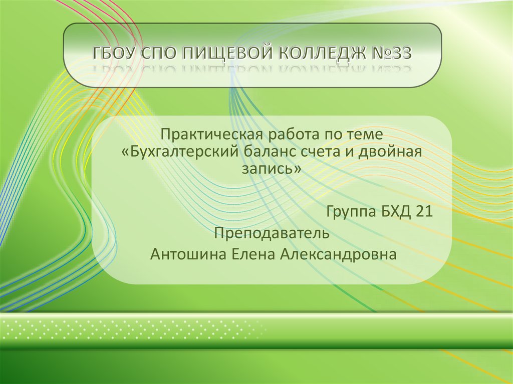 Практическая работа по теме «Бухгалтерский баланс счета и двойная запись»