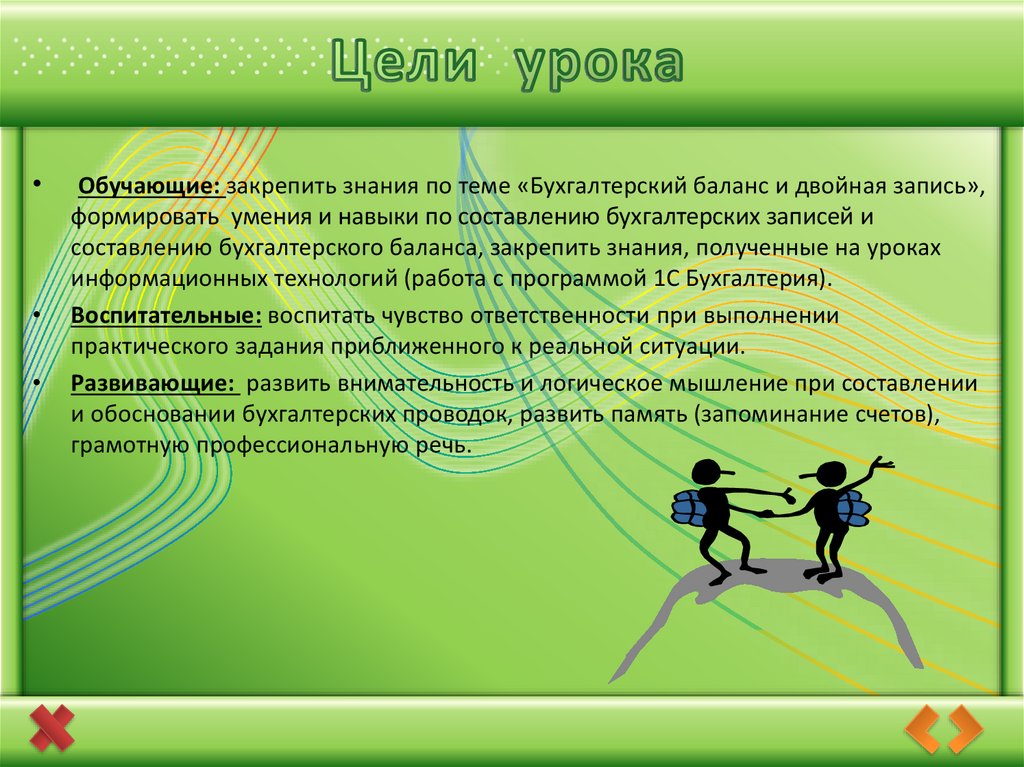 Обучающие: закрепить знания по теме «Бухгалтерский баланс и двойная запись»,