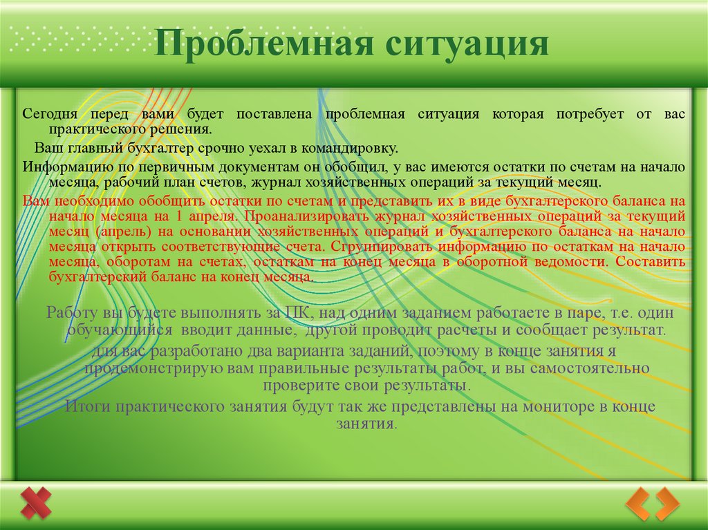 Проблемная ситуацияСегодня перед вами будет поставлена проблемная ситуация которая потребует от вас