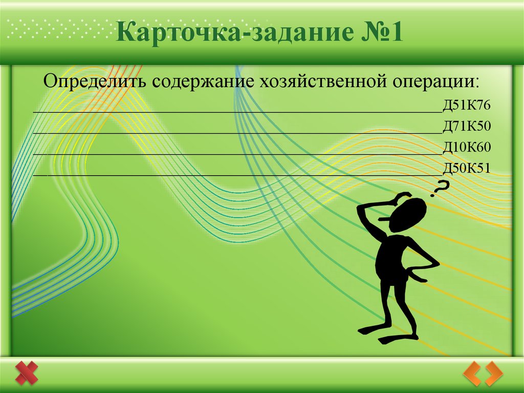 Карточка-задание №1Определить содержание хозяйственной операции: