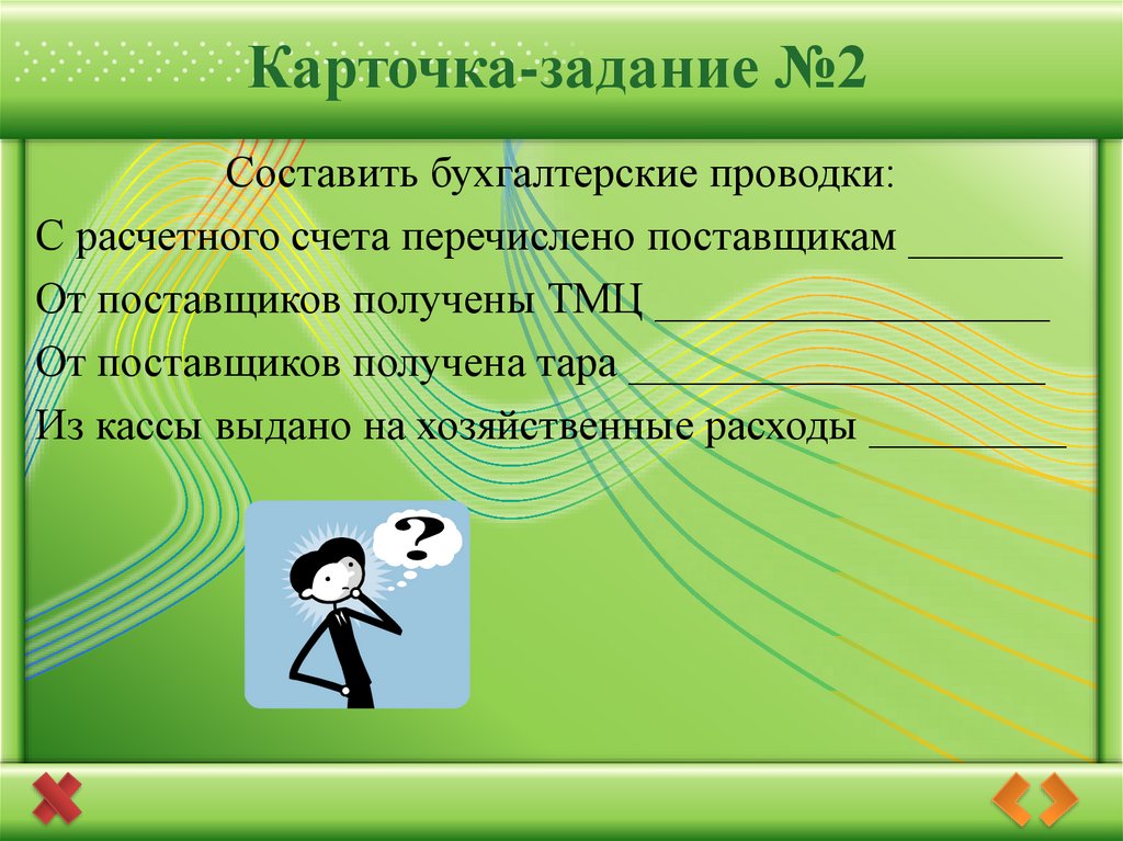 Карточка-задание №2Составить бухгалтерские проводки: