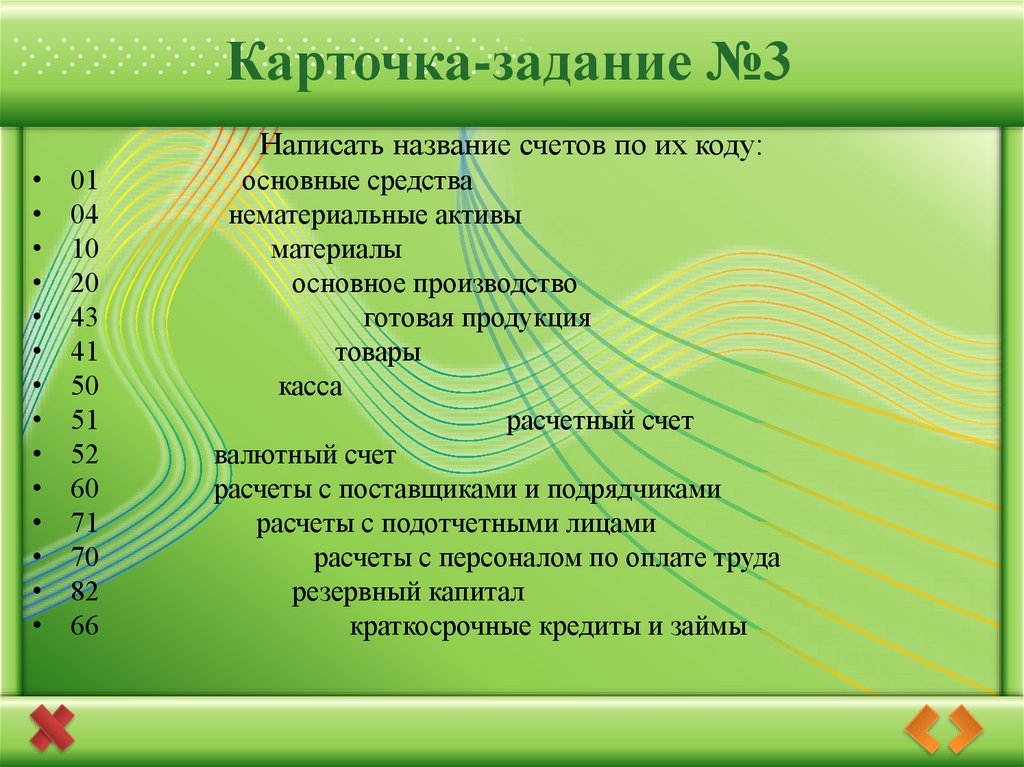 Карточка-задание №3Написать название счетов по их коду: