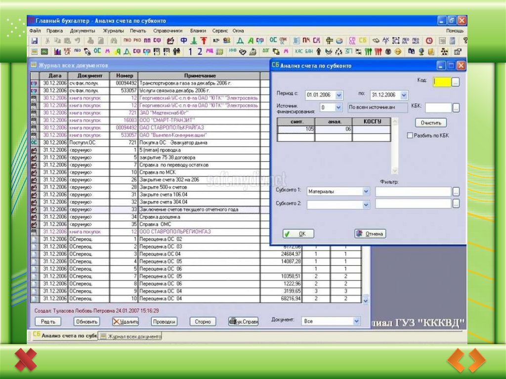 месяца, рабочий план счетов, журнал хозяйственных операций за текущий месяц.