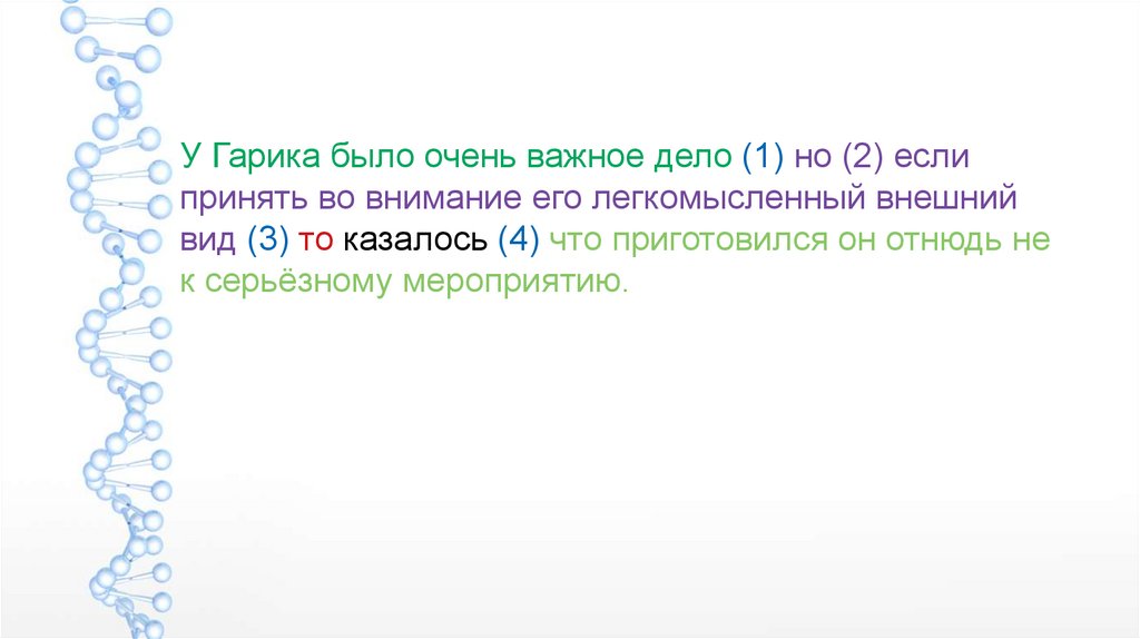У Гарика было очень важное дело (1) но (2) еслипринять во внимание его легкомысленный внешний