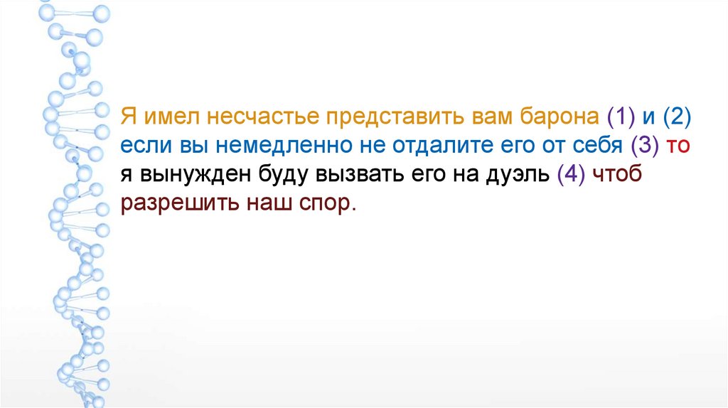 Я имел несчастье представить вам барона (1) и (2)если вы немедленно не отдалите его от себя (3) то