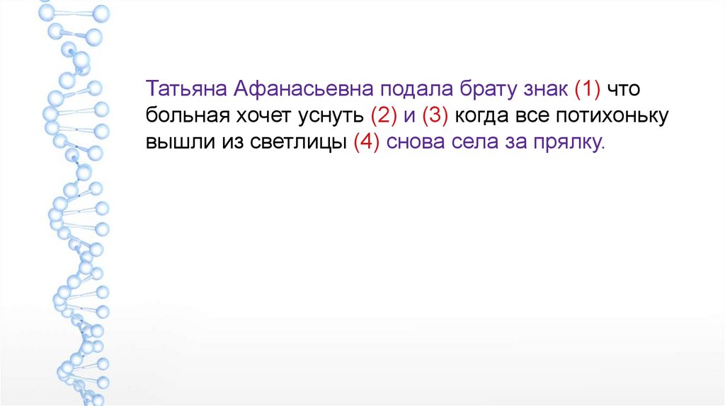 Татьяна Афанасьевна подала брату знак (1) чтобольная хочет уснуть (2) и (3) когда все потихоньку