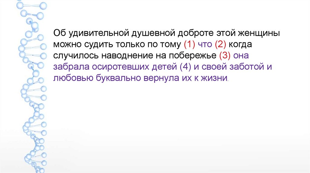 Об удивительной душевной доброте этой женщиныможно судить только по тому (1) что (2) когда