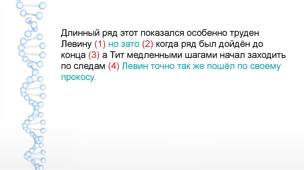 Длинный ряд этот показался особенно труденЛевину (1) но зато (2) когда ряд был дойдён до