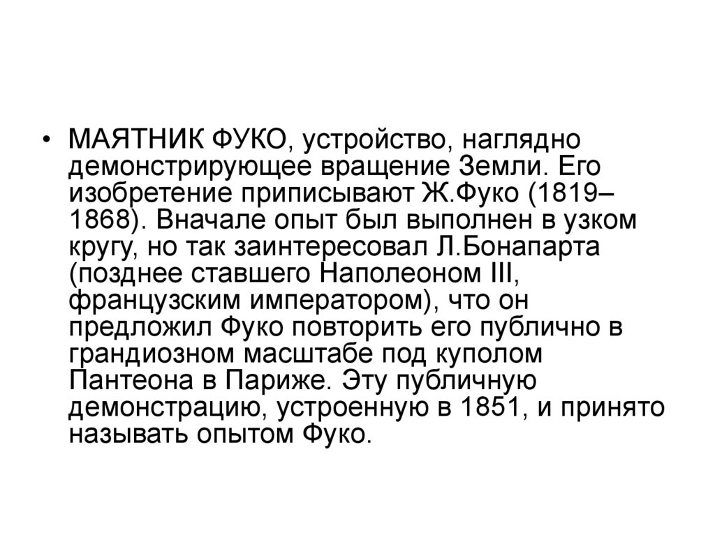 • Впервые публичная демонстрация былаосуществлена Фуко в 1851 г. в Парижском Пантеоне: