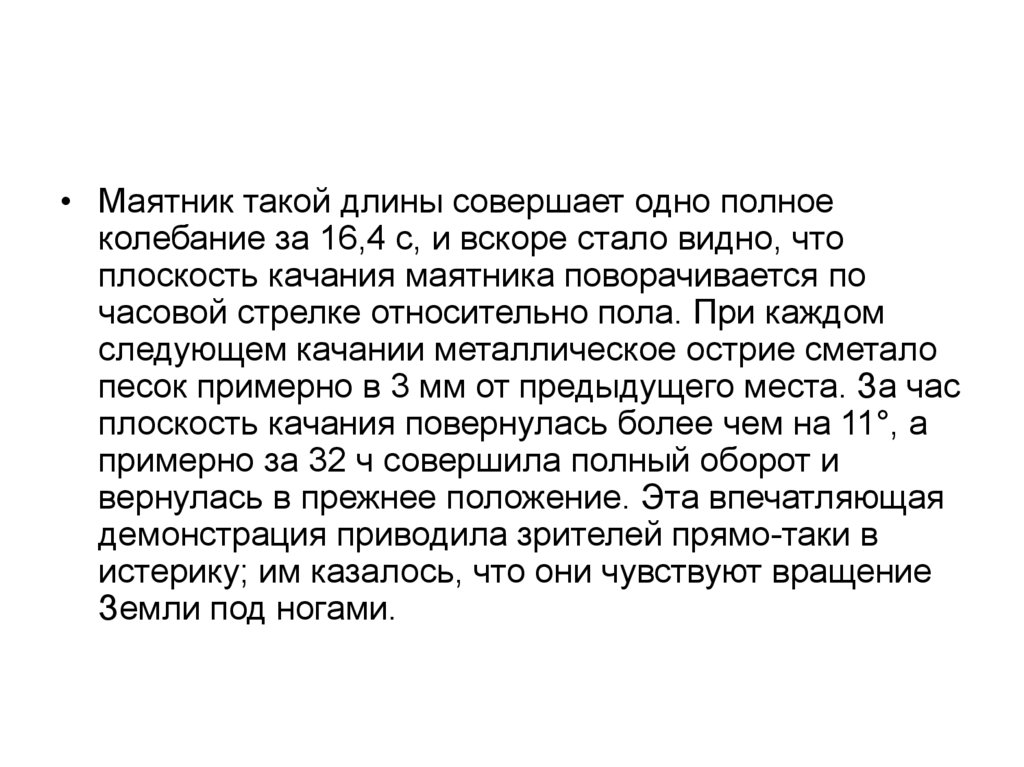 • Маятник такой длины совершает одно полноеколебание за 16,4 с, и вскоре стало видно, что