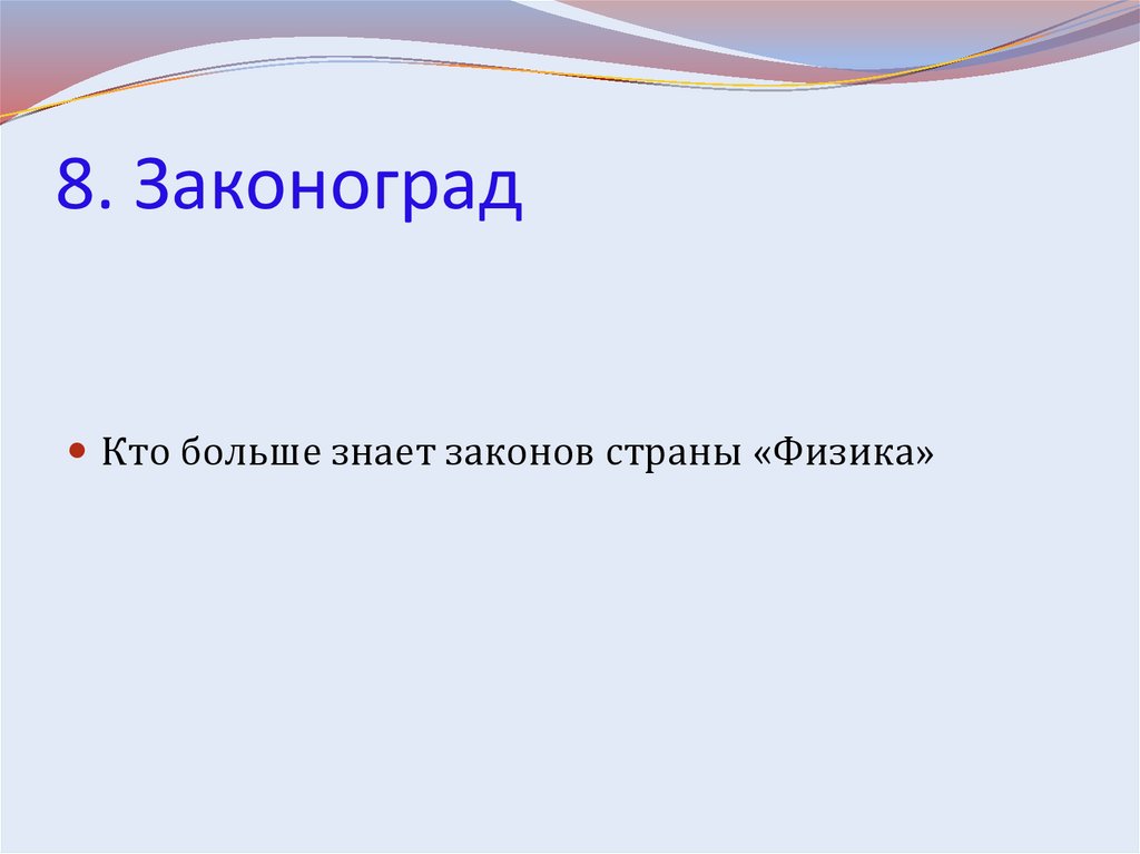 8. ЗаконоградКто больше знает законов страны «Физика»