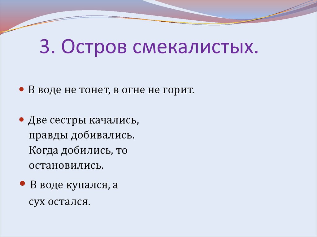 3. Остров смекалистых.В воде не тонет, в огне не горит.