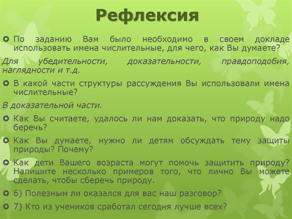РефлексияПо заданию Вам было необходимо в своем докладе