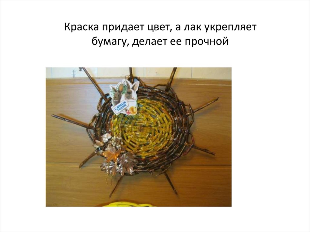 Краска придает цвет, а лак укрепляетбумагу, делает ее прочной