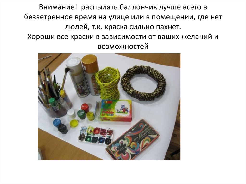 Внимание! распылять баллончик лучше всего вбезветренное время на улице или в помещении, где нет