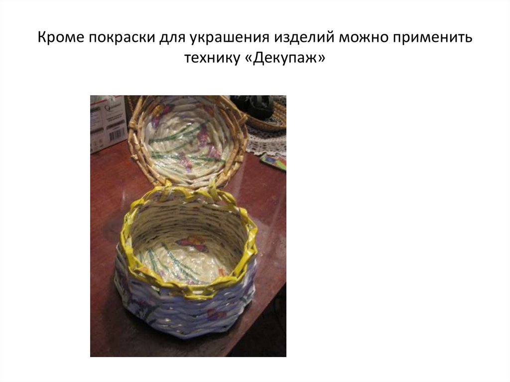 Кроме покраски для украшения изделий можно применитьтехнику «Декупаж»