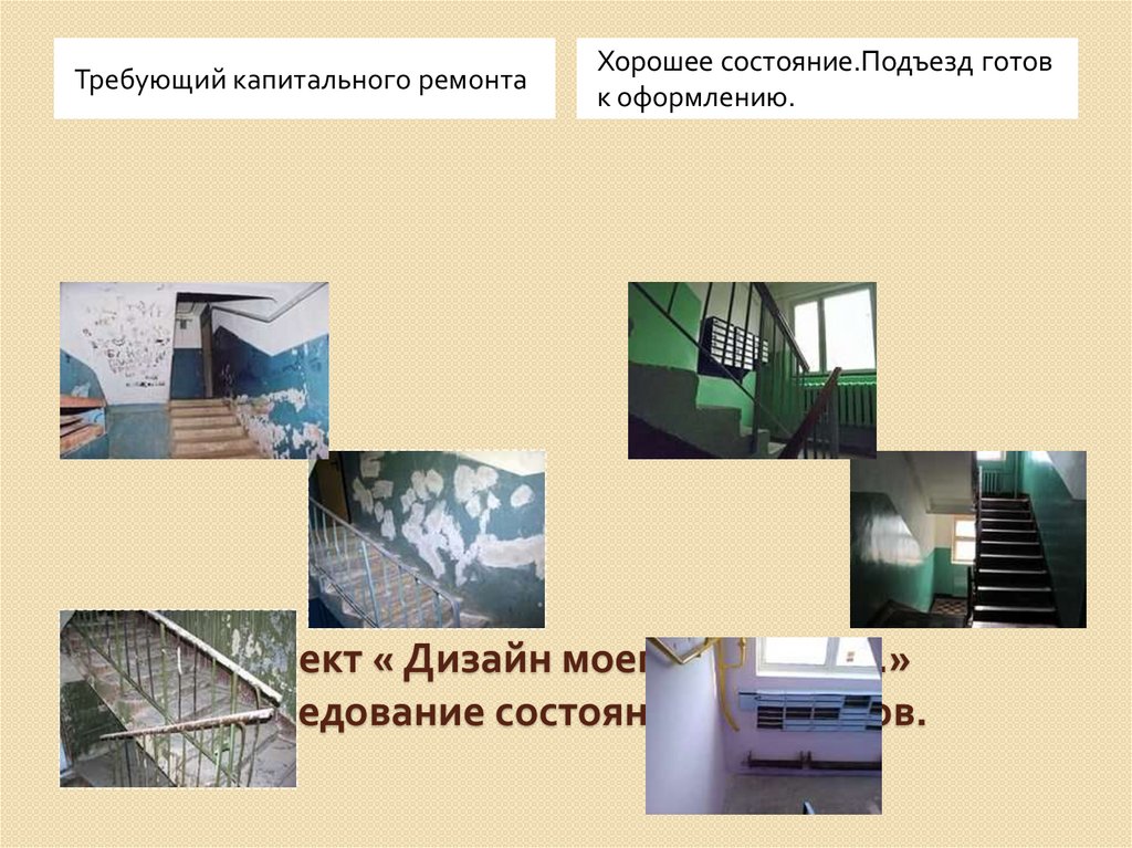 Требующий капитального ремонтаХорошее состояние.Подъезд готов