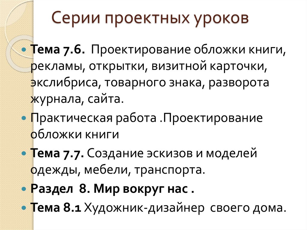Серии проектных уроковТема 7.6. Проектирование обложки книги,