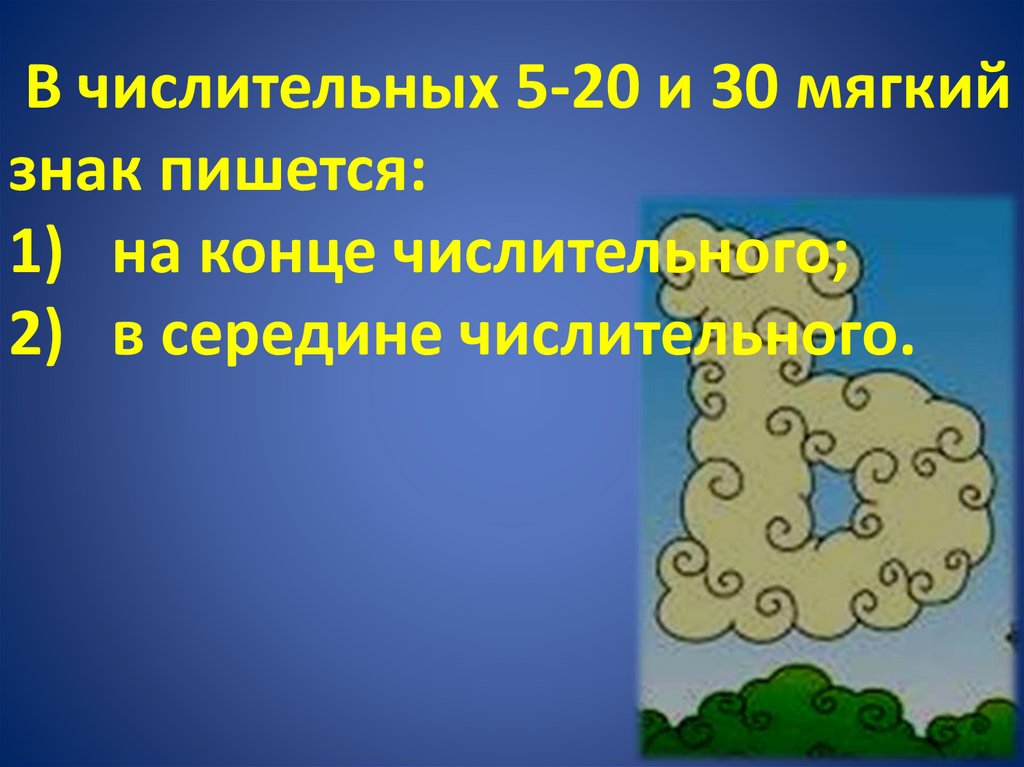 В числительных 5-20 и 30 мягкийзнак пишется: