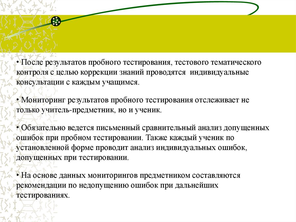 • После результатов пробного тестирования, тестового тематическогоконтроля с целью коррекции знаний проводятся индивидуальные