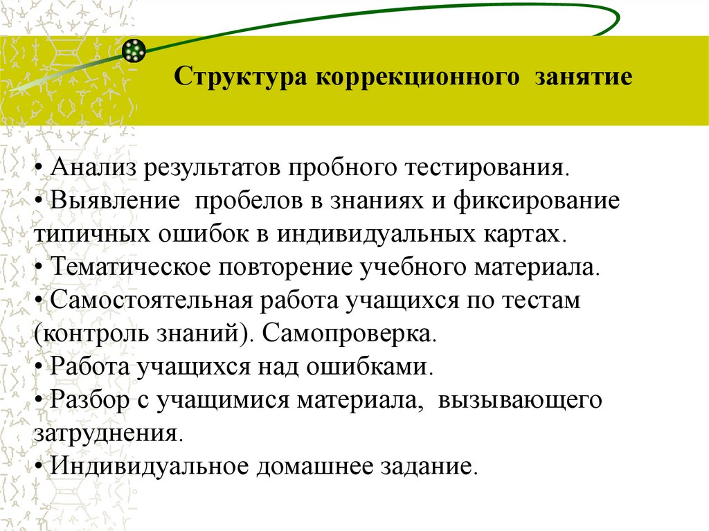 Структура коррекционного занятие• Анализ результатов пробного тестирования.