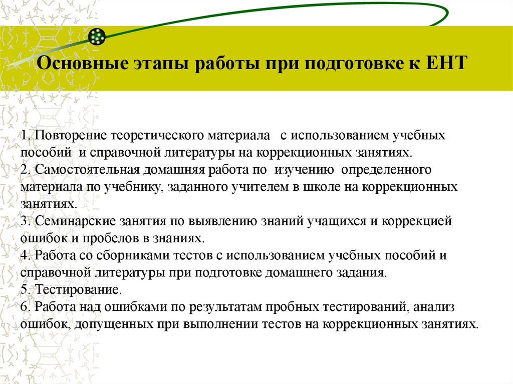 Основные этапы работы при подготовке к ЕНТ1. Повторение теоретического материала с использованием учебных